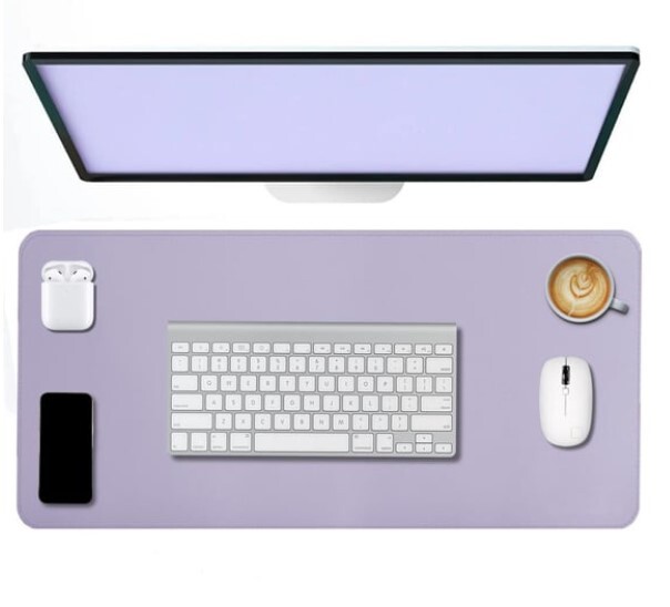 Lila Deri Mouse Pad 70x30 L Dikişli Kenar Çift Yönlü Kullanım Masa Matı Sümen