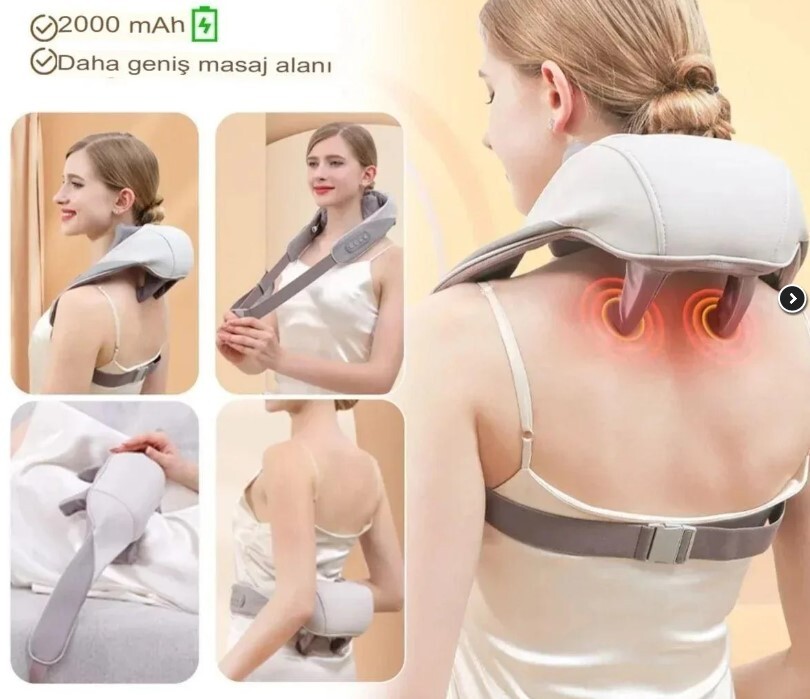 MASAJ ALETİ Şarjlı Yeni Nesil 8D Boyun Sırt Omuz Yoğurma Asmalı Masaj Yastığı